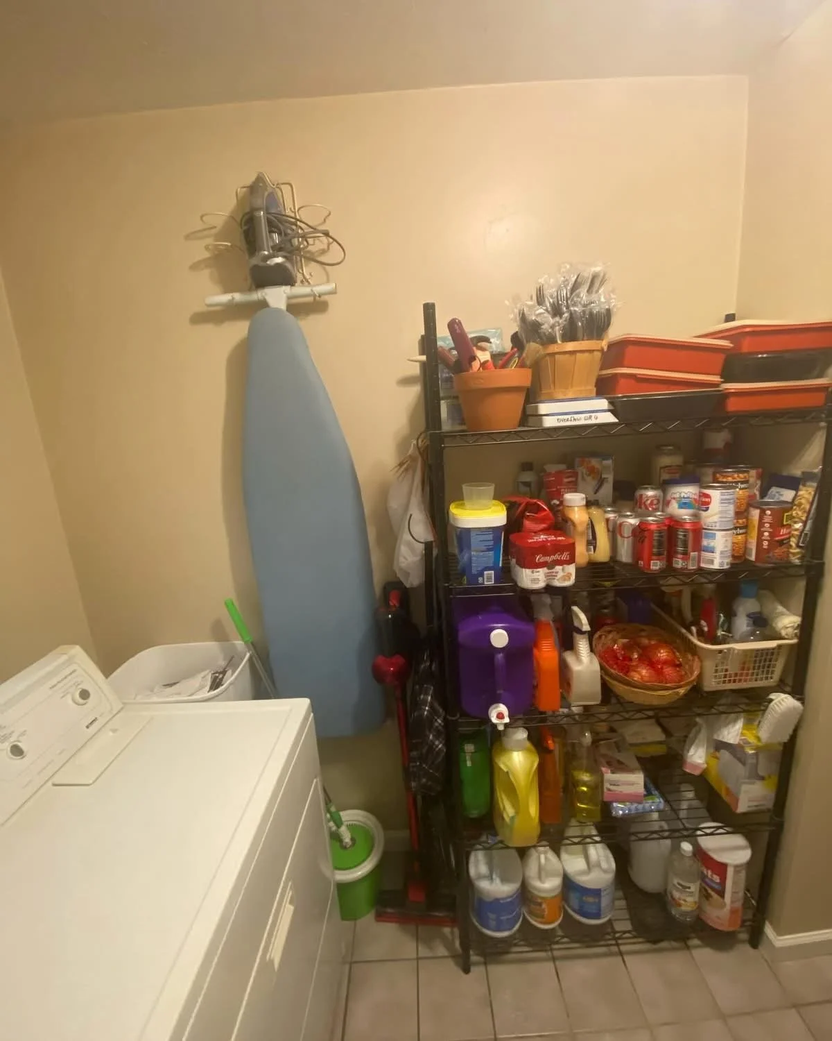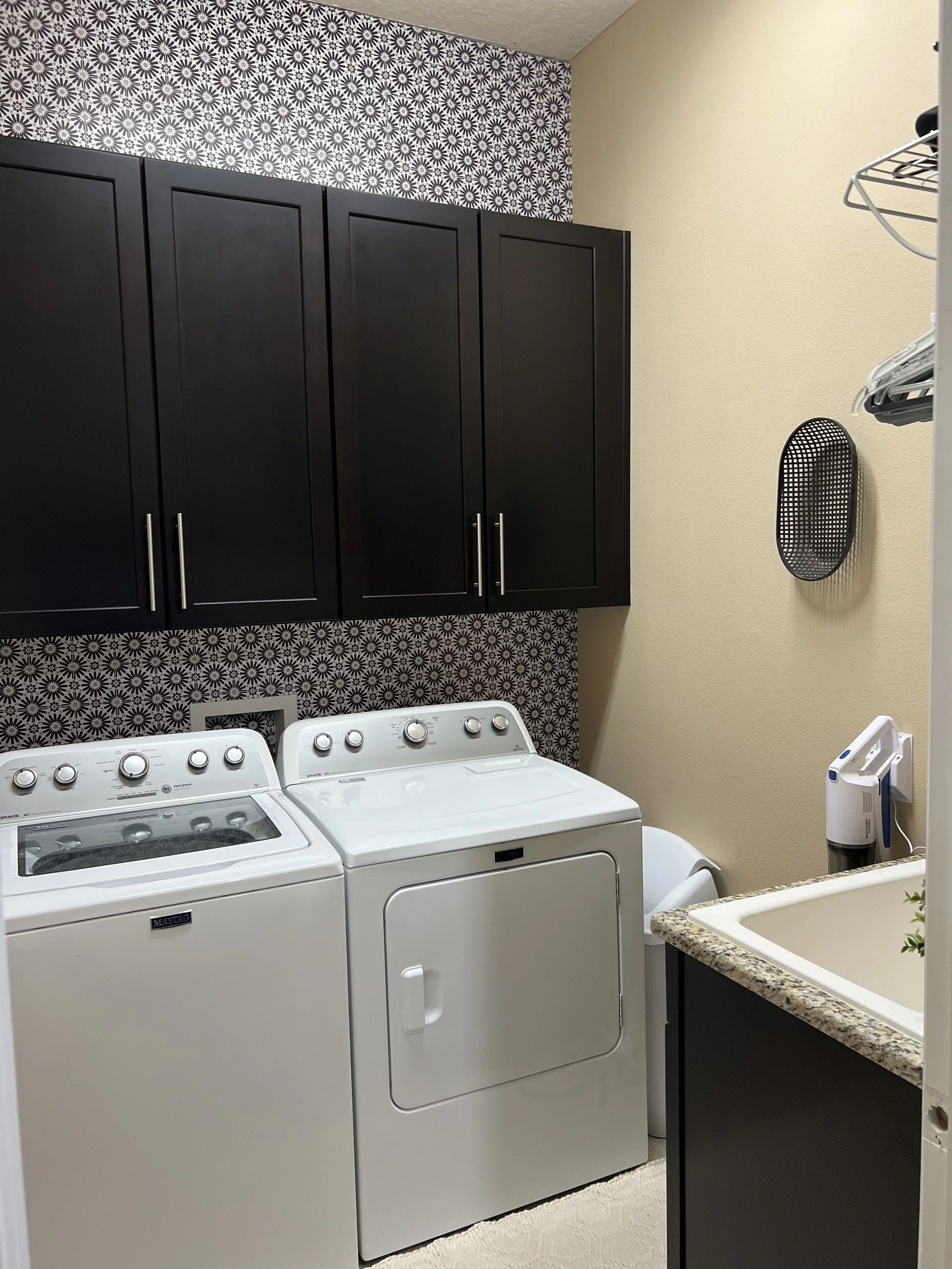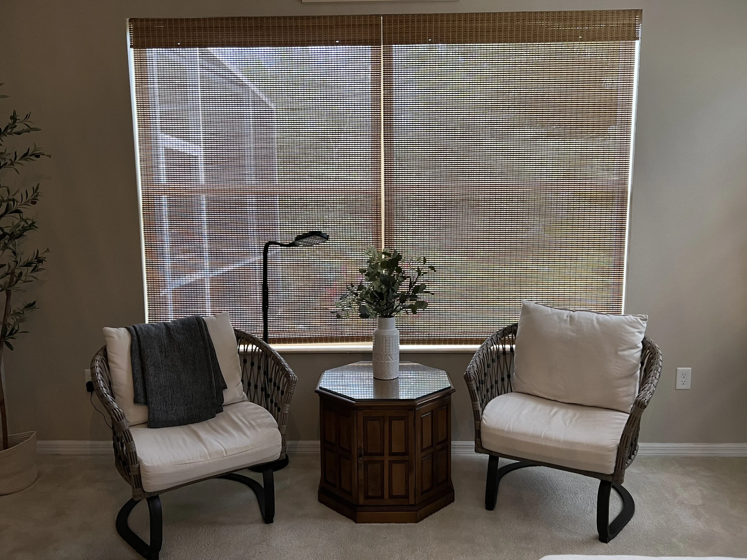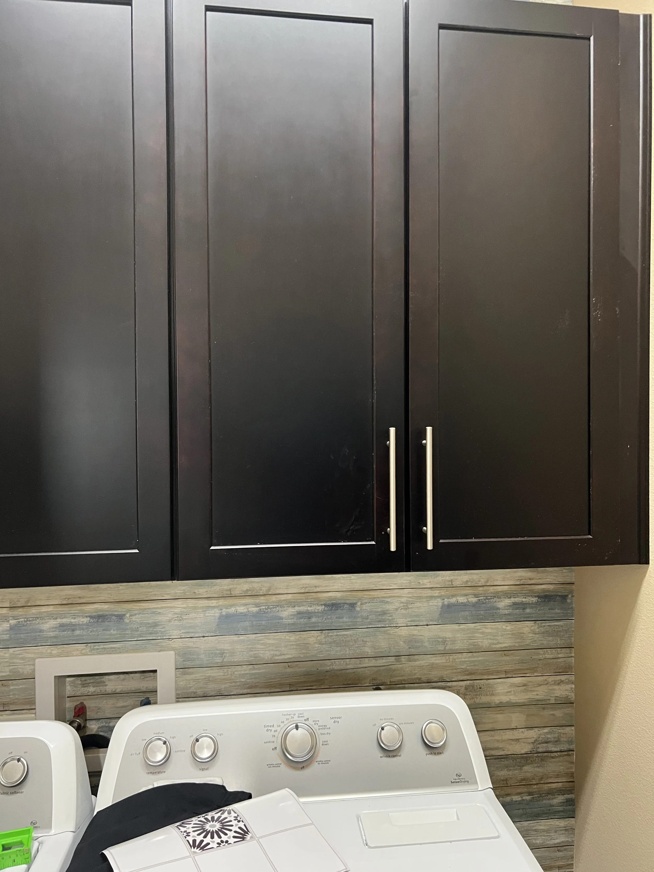 Added wallpaper, open shelves, removed blinds and placed privacy film.