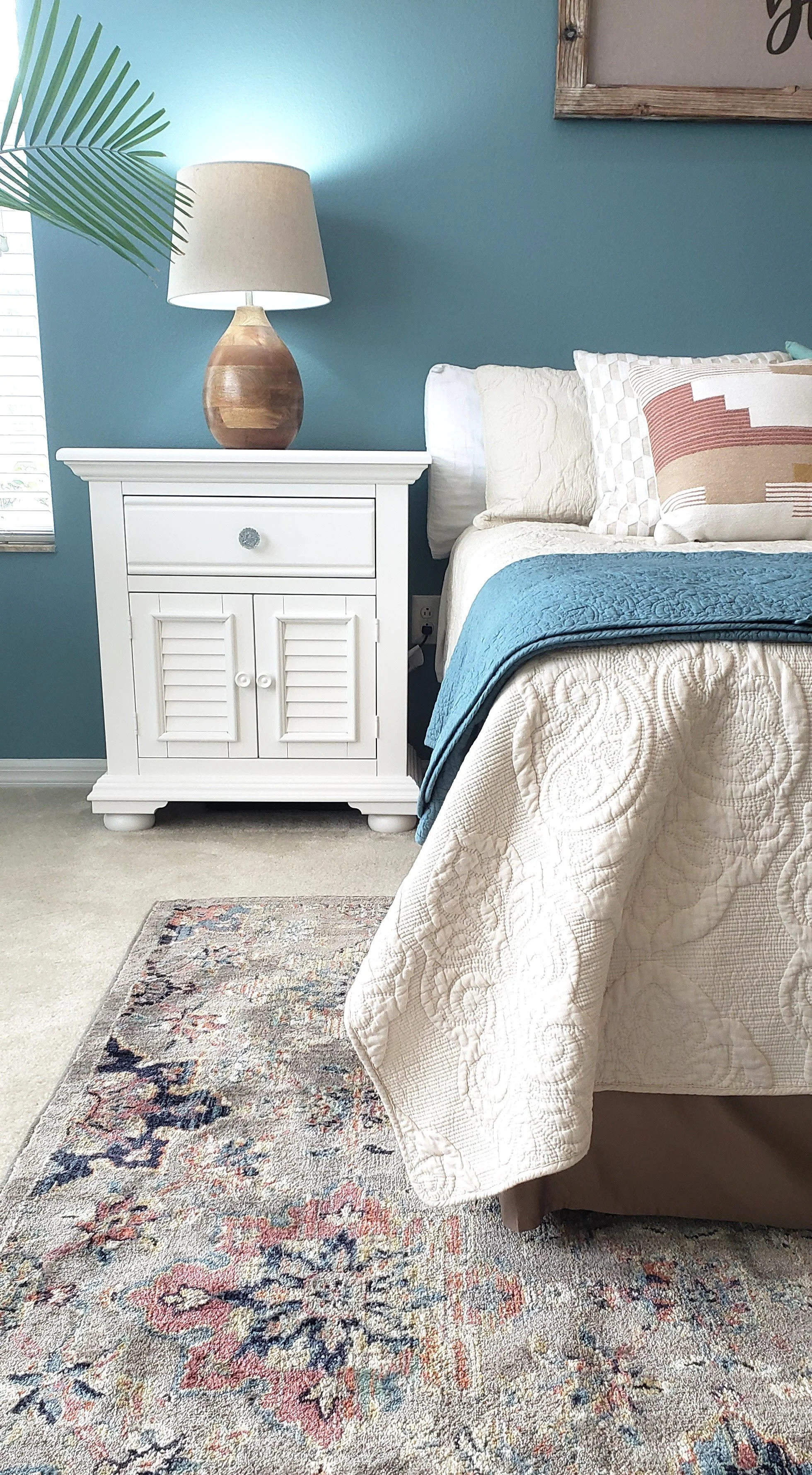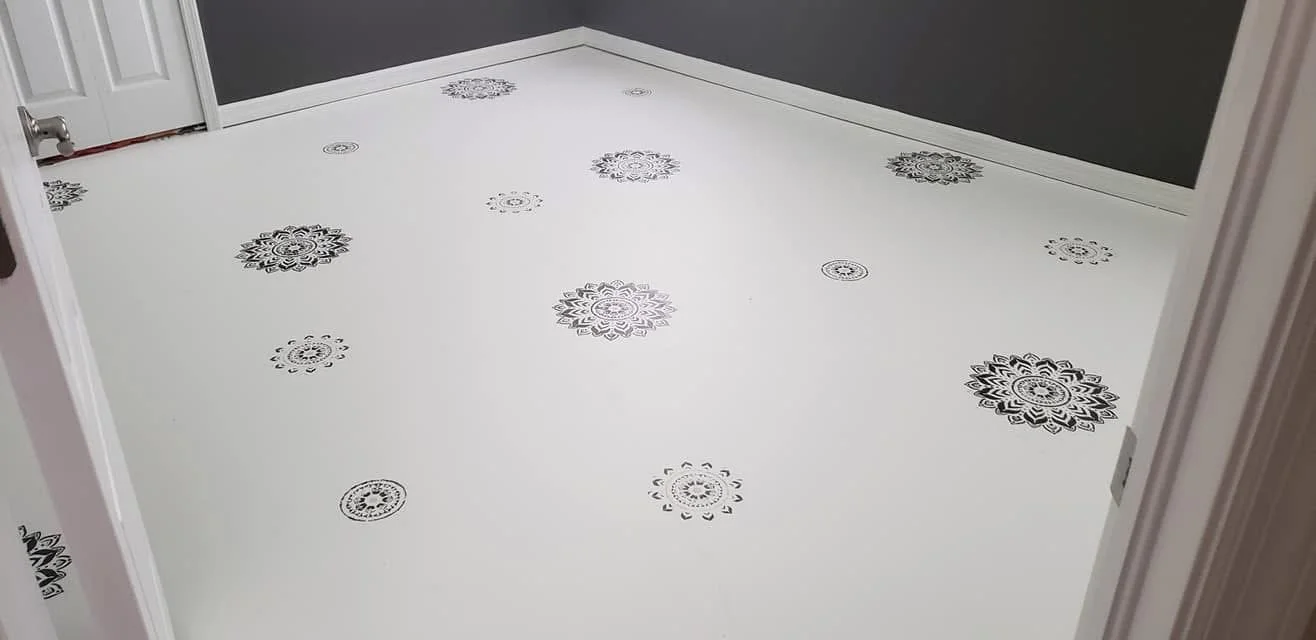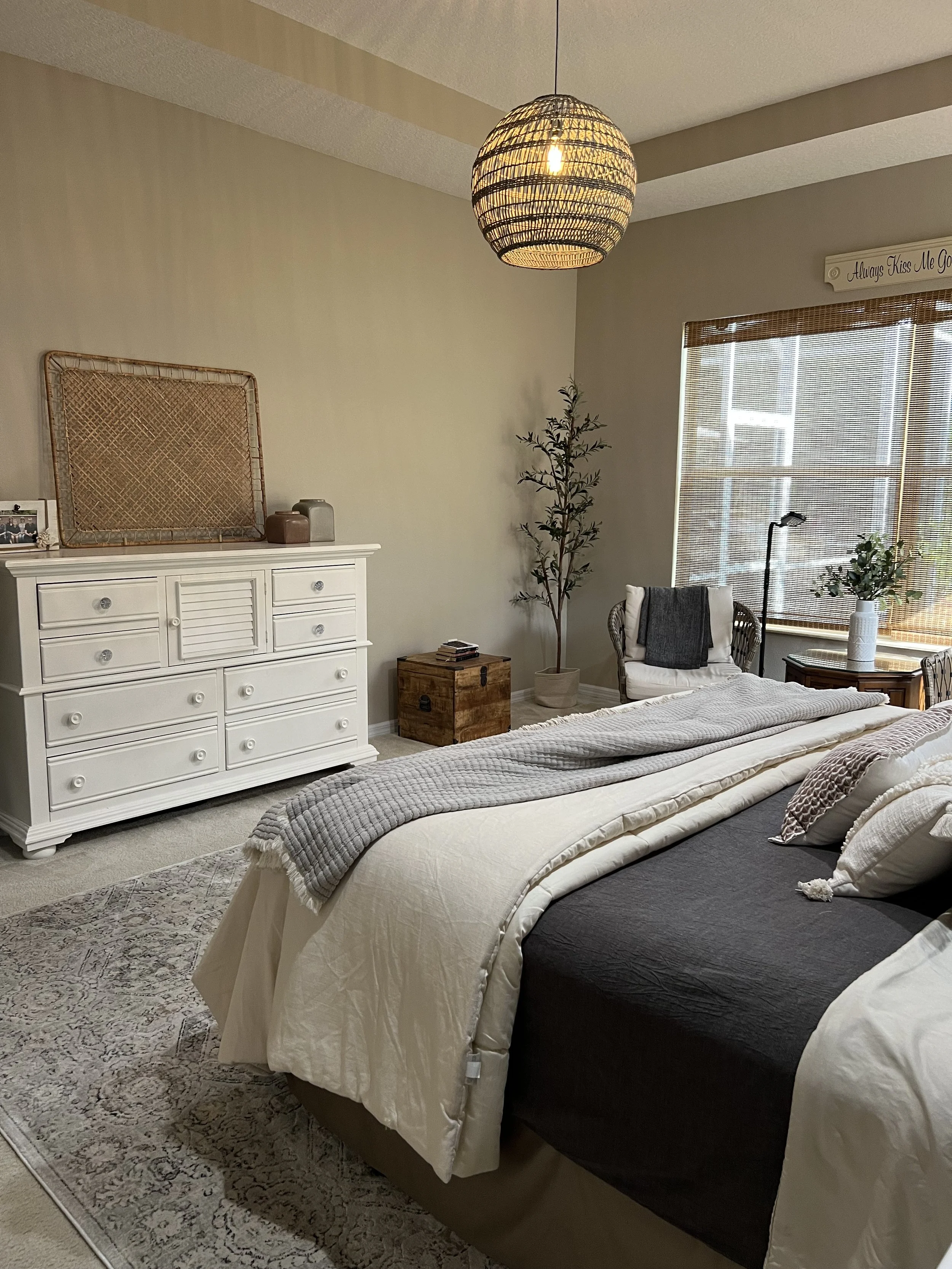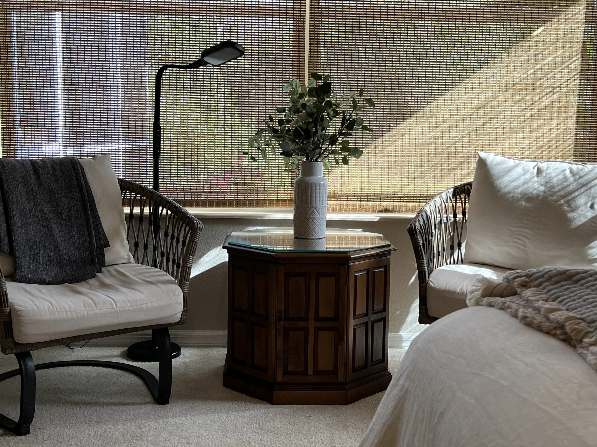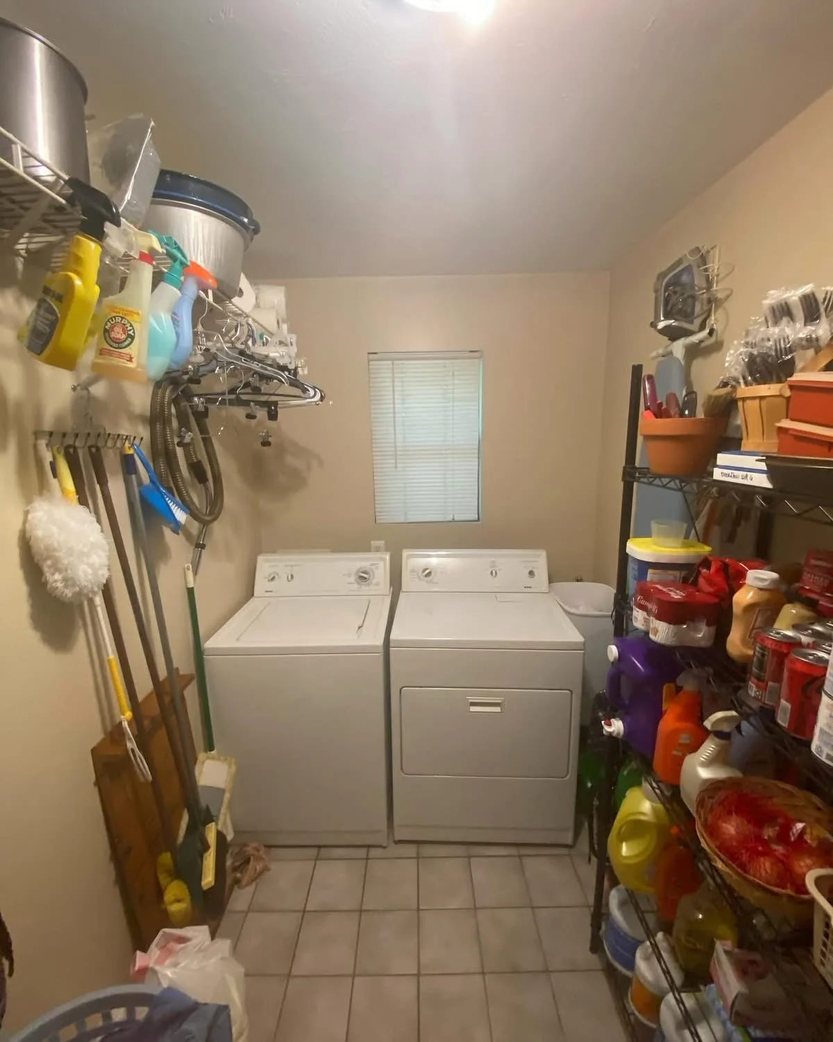 Added wallpaper, open shelves, removed blinds and placed privacy film.